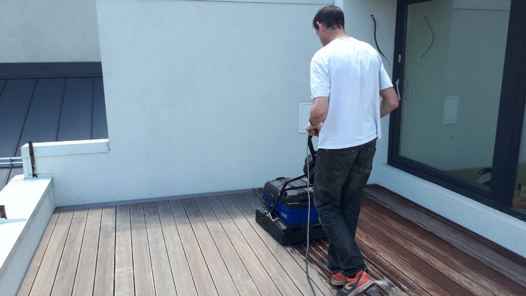 Desigur ca stergerea pardoselii de praf o puteti face singuri; desigur ca puteti aplica periodic solutia de curatare si de improspatare. Cu trecerea timpului, insa, veti observa ca finisajul isi pierde din calitati si pare mai tern, iar punctisoarele negre devin tot mai dese si mai mari, lasand impresia ca totusi pardoseala nu este curata.
